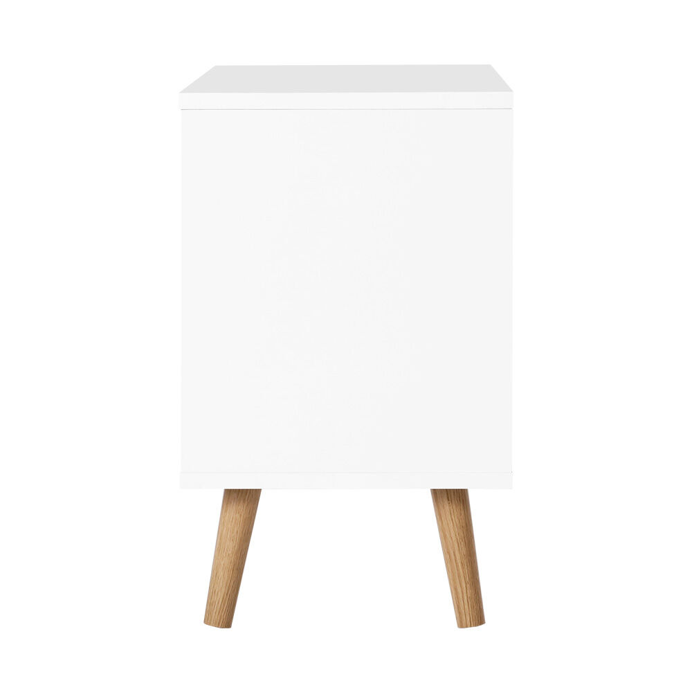 $51.29A design that is Scandinavian-inspired and yet reminiscent of decades-old influences, our Artiss Boden Bedside Table offers full functionality with stylish cues. Made from quality particle board with smooth paper veneer finish, the bedside table is the perfect choice to grace any bedroom, study or any other space in a discerning home or establishment. The splayed legs add a unique stance to this very able beside table that also comes with cut-out handles and smooth anti-rust drawer slides for hassle-free use. Not least, ample storage space is found with the two drawers for all your bedside or personal essentials. For everything that needs to be close at hand anytime, this bedside table is the convenient one to facilitate your requests.
