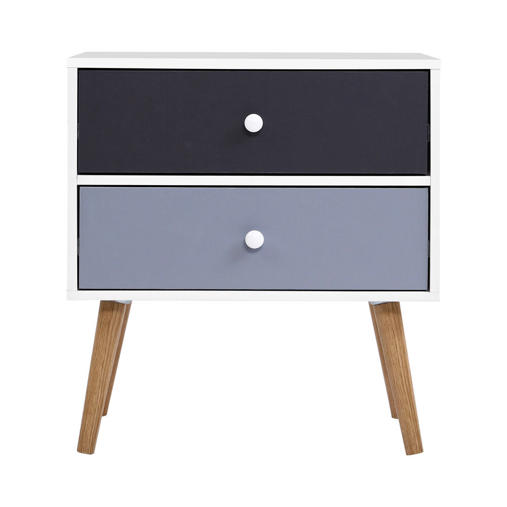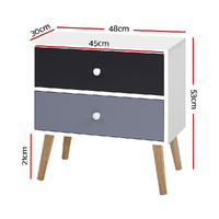$57.59A design that is Scandinavian-inspired and yet reminiscent of decades-old influences, our Artiss Bedside Table offers full functionality with stylish cues. Made from quality particle board with smooth paper veneer finish, the two-tone bedside table adds some chic appeal to your decor and is the perfect choice to grace any bedroom, study or any other space in a discerning home or establishment. The splayed legs add a unique stance to this very able beside table that also comes with classic knob handles and smooth anti-rust metal drawer slides for hassle-free use. Not least, ample storage space is found with the two drawers for all your bedside or personal essentials. For everything that needs to be close at hand anytime, this bedside table is the convenient one to facilitate your requests.