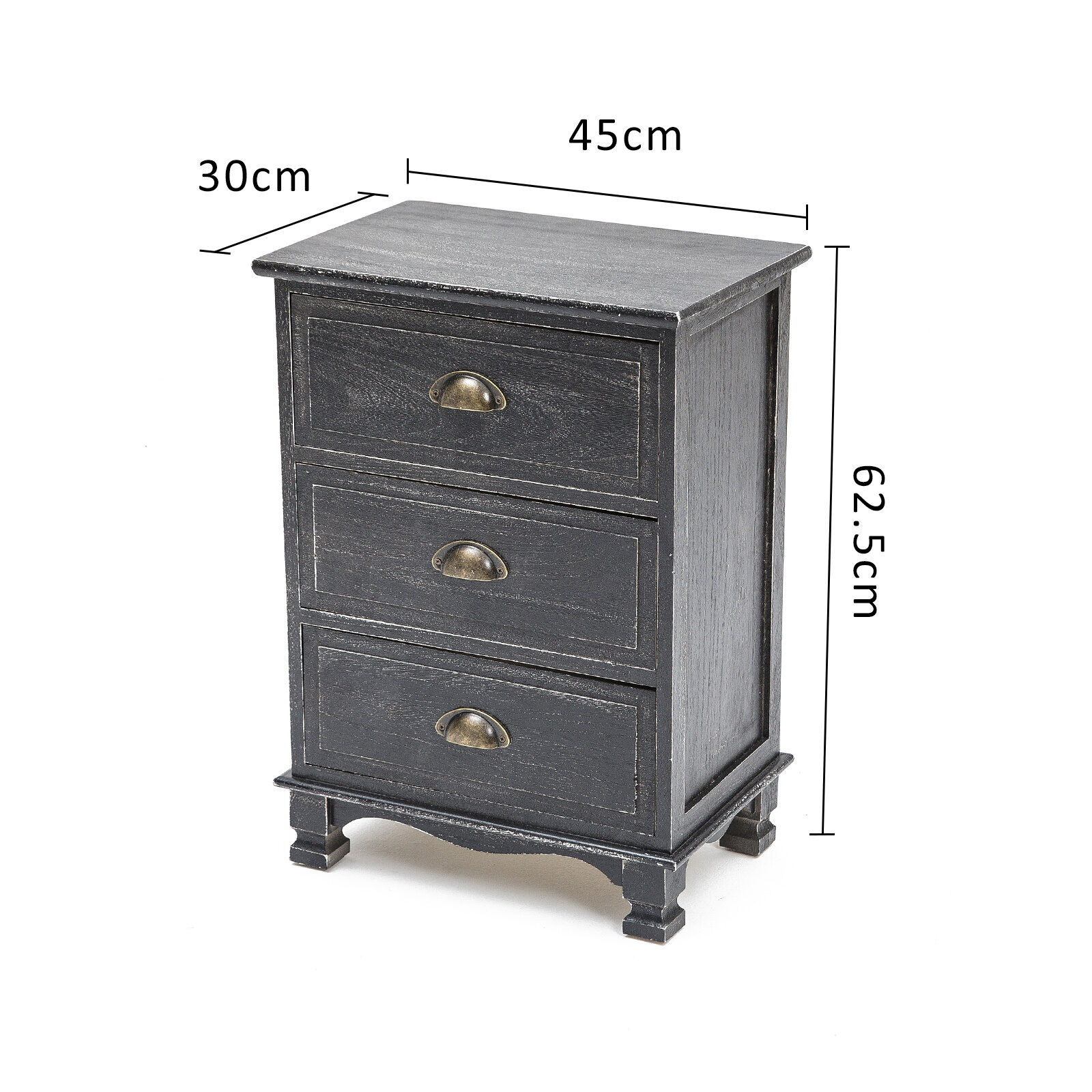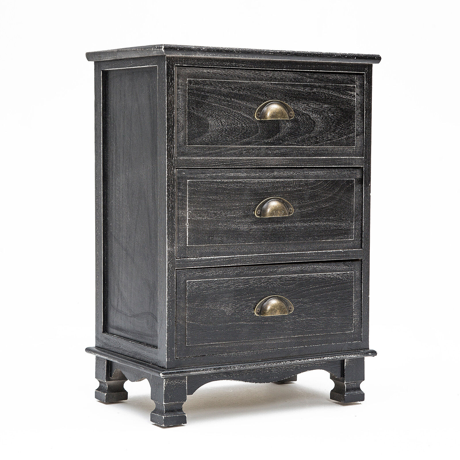La Bella Bedside Table 3 Drawer Vintage Side Table Storage Cabinet Bedroom CLARA - Black