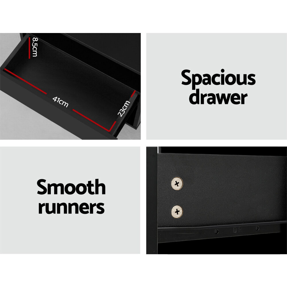Artiss bedside table with built-in LED lighting is customisable into 16 different colours to suit your preferences. It will create a beautiful ambience that you’ll love to rest in. You also won’t need extra bedside lamps or nightlights for your bedroom. This bedside table is handy and designed for convenience and ease of use. It flaunts a beautiful modern design and is practically built to make your life easier and simpler. Furthermore, space isn’t a concern. It features a smooth-sliding spacious drawer and an open shelf where you can keep your nighttime essentials neatly and display decorative pieces. Having constructed from quality particleboard with a high-gloss UV front, the bedside table is durable and easy to maintain. It makes a great addition to your bedroom. Not least, the handle-free design adds a decorative touch to the bedside table that stands out from the mundane.