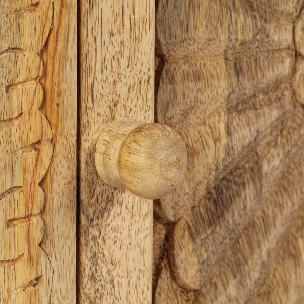 NOW $193.43The wooden bedside table will make a timeless addition to your interior decor. The side table is made of solid mango wood and is highly stable and durable. The sturdy top is ideal for placing your glasses, books, teacups, etc. The nightstand provides storage space for keeping your various items neatly organised. The carved details give the bedside table a touch of elegant charm. This item is already assembled; no assembly is required. Important note: The colours and grains of the wood may vary from piece to piece, making each piece unique and slightly different from the next; the delivery is random.