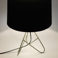 The Belira Table Lamp offers a modern design that can fit seamlessly in most home decors. The base of the Belira provides the contemporary character with a metal bar curved and shaped to make for an attractive and sturdy lamp foundation. The black traditional drum style lampshade is a pleasing contrast to the base, which comes in antique brass or copper.