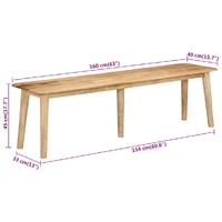 $325.79The solid wooden bench is a great addition to your living room or hallway. Durable material: Solid mango wood is a strong, tropical hardwood that makes sturdy furniture. Its beautiful wood grains make every piece of furniture slightly different from the next.Practical design: This bench seating is an ideal choice for eating and chatting with friends or family.Wide applications: This bench chair can also be used as a hall bench or dressing room bench. Good to know:Colours and grains vary per furniture item, making each piece unique. The delivery is random, ensuring the exclusivity and individuality of your product.