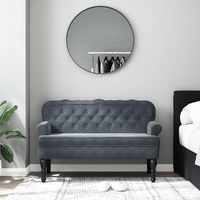 $252.95Whether you're looking to create a cosy seating area in your home or a functional and stylish piece for your office, this elegant bench is an excellent choice. Soft velvet: Velvet is a soft and comfortable fabric that feels nice against the skin.Comfortable seating: The bench seat is highly comfortable with the thickly padded seat, backrest and armrests.Elegant design: The bench chair features a wave-shaped backrest, button tufts, rolled armrests and antique-styled legs, which adds a touch of elegance to your home decor.Wooden feet: The solid rubber wood feet give the product a natural and pleasant look while ensuring stability. It can blend well with any interior decor.Sturdy and stable frame: The plywood frame of the bench seating ensures sturdiness and stability.