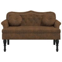 $220.36Whether you're looking to create a cosy seating area in your home or a functional and stylish piece for your office, this elegant bench is an excellent choice. Durable material: The faux suede leather consists of extremely fine fibers that are particularly resistant to stains. Faux suede leather is a great choice for furniture upholstery due to its durability and easy cleaning.Comfortable seating: The bench seat is highly comfortable with the thickly padded seat, backrest, armrests and back cushions.Elegant design: The bench chair features button tufts, rolled armrests, a backrest with arc lines and antique-styled legs, which adds a touch of elegance to your home decor.Wooden feet: The solid rubber wood feet give the product a natural and pleasant look while ensuring stability. It can blend well with any interior decor.Sturdy and stable frame: The plywood frame of the bench seating ensures sturdiness and stability.