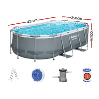 $722.69This Bestway Power Steel™ Frame Pool features a rust-resistant steel frame, UV-resistant PVC and polyester walls, and a durable, semi-permanent design for summer-long use. It includes an easy-drain valve with a garden hose adapter for convenience.