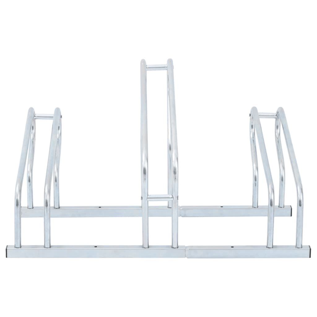 $56.04Utilise this bicycle stand to safely and efficiently park your bikes, saving valuable space.Sturdy and long-lasting: This bicycle stand is made of galvanised steel, making it sturdy, corrosion-resistant, long-lasting, and lightweight for easy movement.Space-saving: This bicycle stand has a high-low wheel design and accommodates three bikes without handlebar tangling, optimising space for efficient parking.Stable structure: You can fasten the bicycle stand securely using the provided screws to prevent your bike from tipping or falling, ensuring it remains stable.Wide applications: This bicycle stand is perfect for accommodating multiple bikes with tyre widths of up to 55 mm and is suitable for indoor and outdoor use in various settings, including garages, warehouses, schools, shops, and more.
