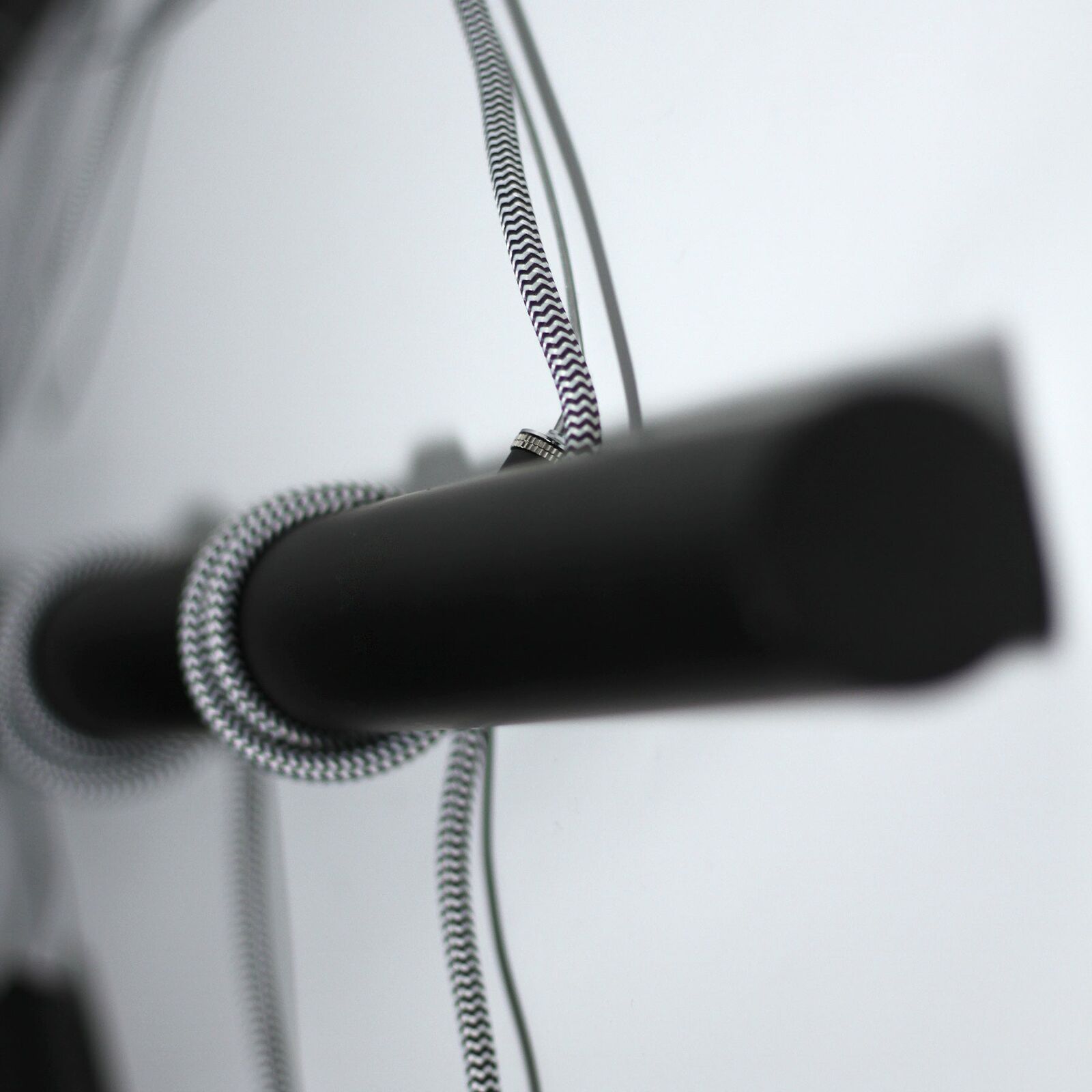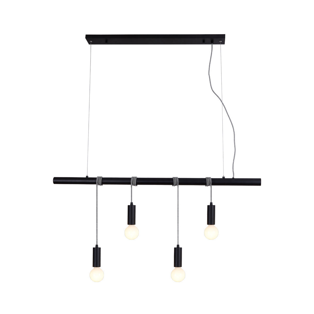 The four globe holders that drop from the lighting bar each have long grey braided cords that can be wrapped around the lighting bar to set heights individually. The heights can set to your preference, whether after a staggered look, or a short non-invasive drop, or a long, purposeful hang. The Bikkel Four Light Pendant comes in black and white and requires four E27 globes.