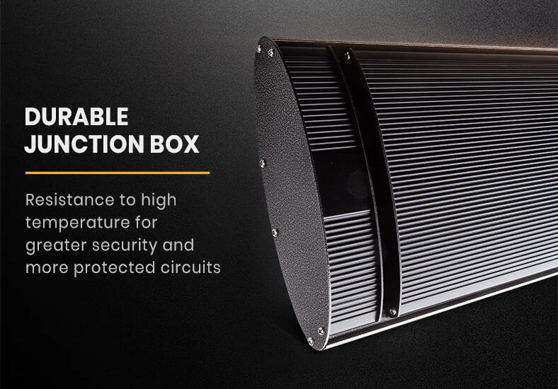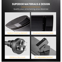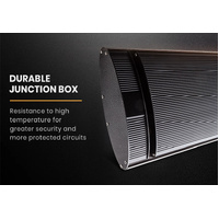 A 2400 watt electric element is embedded in the black anodised aluminium strip that rapidly produces even and gentle heat dispersion. Plus, unlike gas heaters there is no glow or glare, and no need to refuel - providing huge running costs savings.