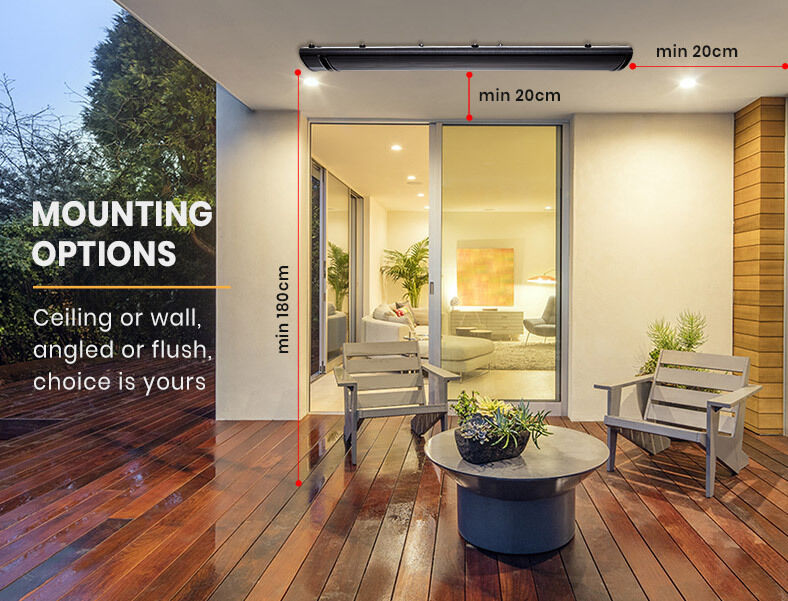 Easy to integrate into any outdoor living space, the Spectra 24 promises silent and maintenance-free operation. Equipped with a lead and plug for simple installation, the electric heater is designed with a swivel brackets to allow for the flexibility to mount to almost anywhere undercover on walls, ceilings or beams and is operated using a single switch activation.