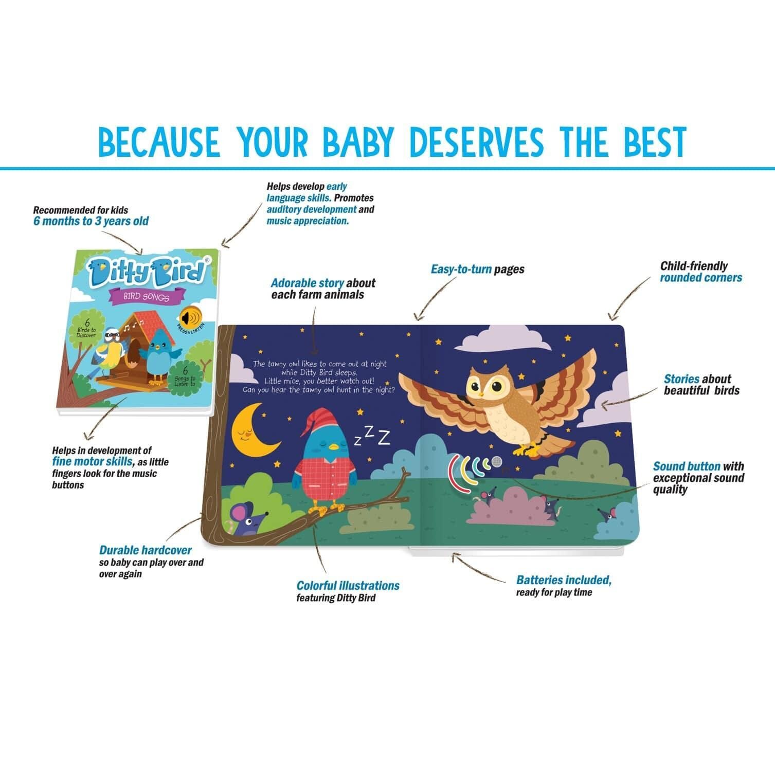 $24.65Does your baby know the magic of different bird calls yet? Let teach them facts and sounds of the Cuckoo; Blue tit; Herring gull; Tawny Owl and Dove. Then listen and learn the adorable song ?Once I Saw A Little Bird? so the whole family can sing along! Time to go Bird Watching (and LISTENING) together.