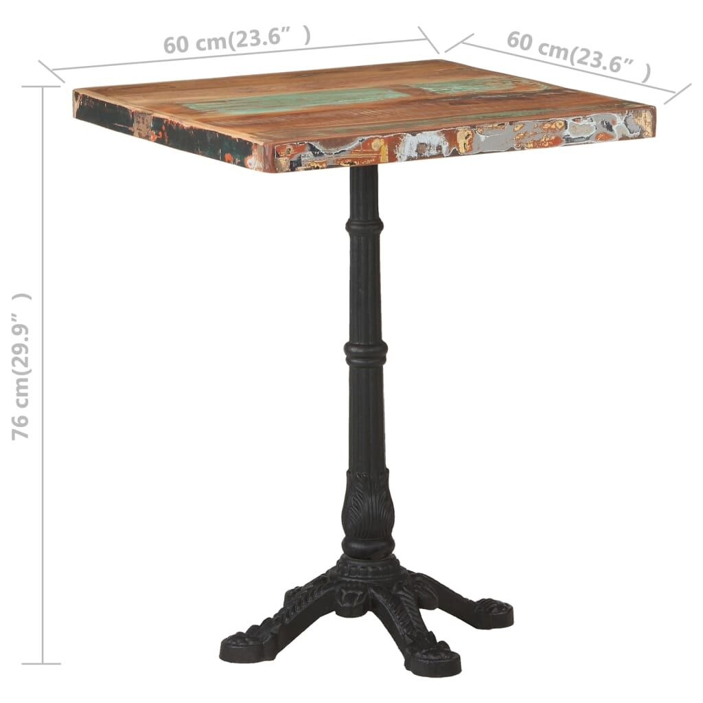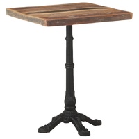 $195.29Add a touch of romantic atmosphere with this wooden bistro table! The tabletop is made of solid reclaimed wood that sourced from joists, floors and support beams from old demolished buildings. So, it can consist of different types of wood like pine, teak, oak, mango wood, acacia, etc. This also means the reclaimed wood retains the characteristics of these types of wood. Reclaimed wood is already aged, weathered and dried, so it doesn't shrink or bend. Additionally, the cast iron base provides stability and sturdiness for it. This dinner table even serves as a table to place your drink or any other necessity you need close at hand. Important note: Colours and grains vary from piece to piece, making each piece unique. The delivery is random as well.