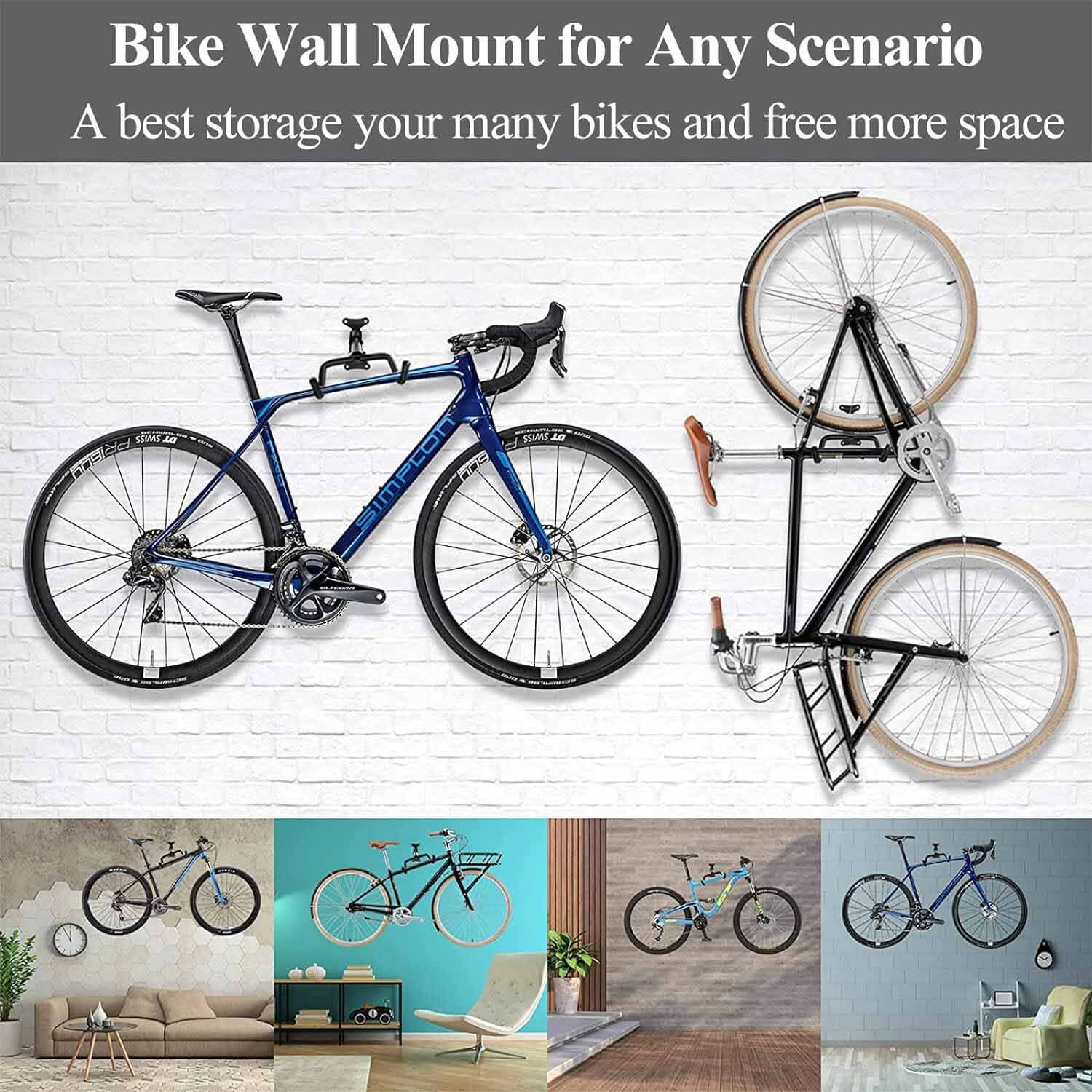 Adjustable cradle arms ensure that most size and shape bicycle frames can be accommodated ,and fit all environments and widths of bicycles. With 30 degree adjustable angle, this storage bike wall mount can fit most bike like road, hybrid and MTB.