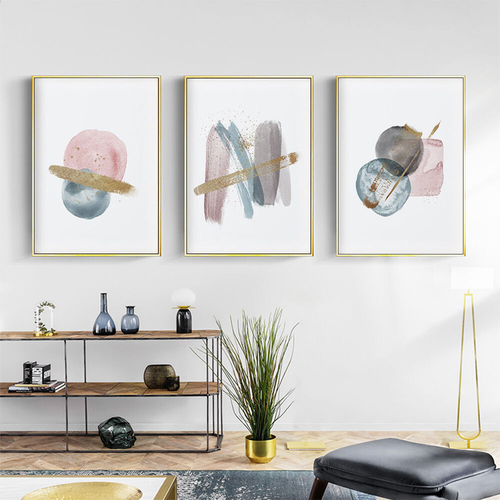 Blush Pink Watercolor 3 Sets Gold Frame Canvas Wall Art