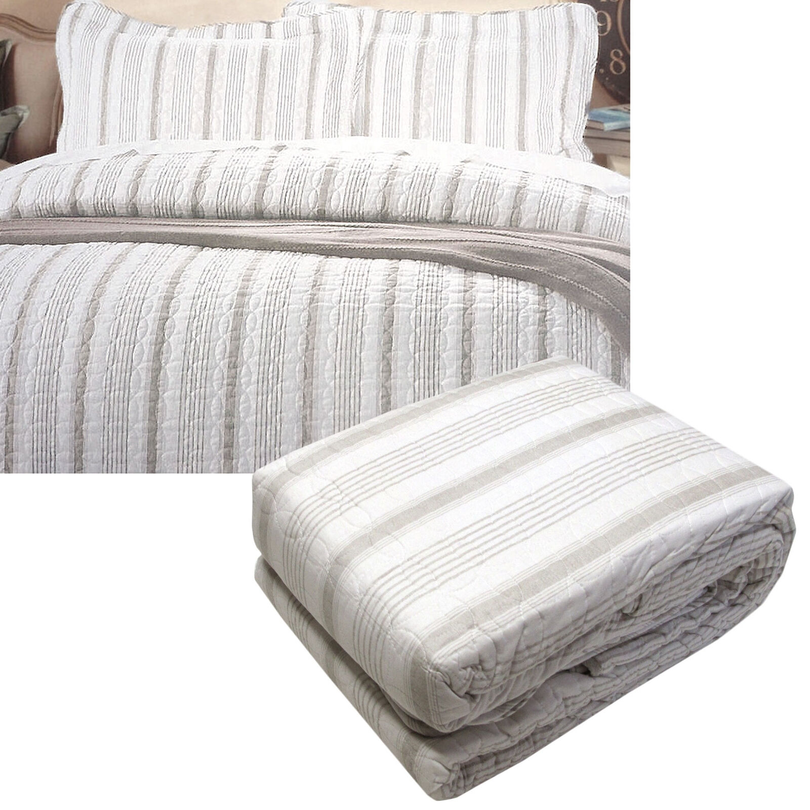 $122.75The Regatta Stone 100% Cotton Quilted Quilt Cover Set by Brighton Road is a lovely set that features a stylish print striped design and quilted circle link pattern in soft tones of Stone and White. It is made from quality 100% cotton fabric and pure cotton fill that is soft against your skin. Set is quality made with tailored edging on the pillowcases.