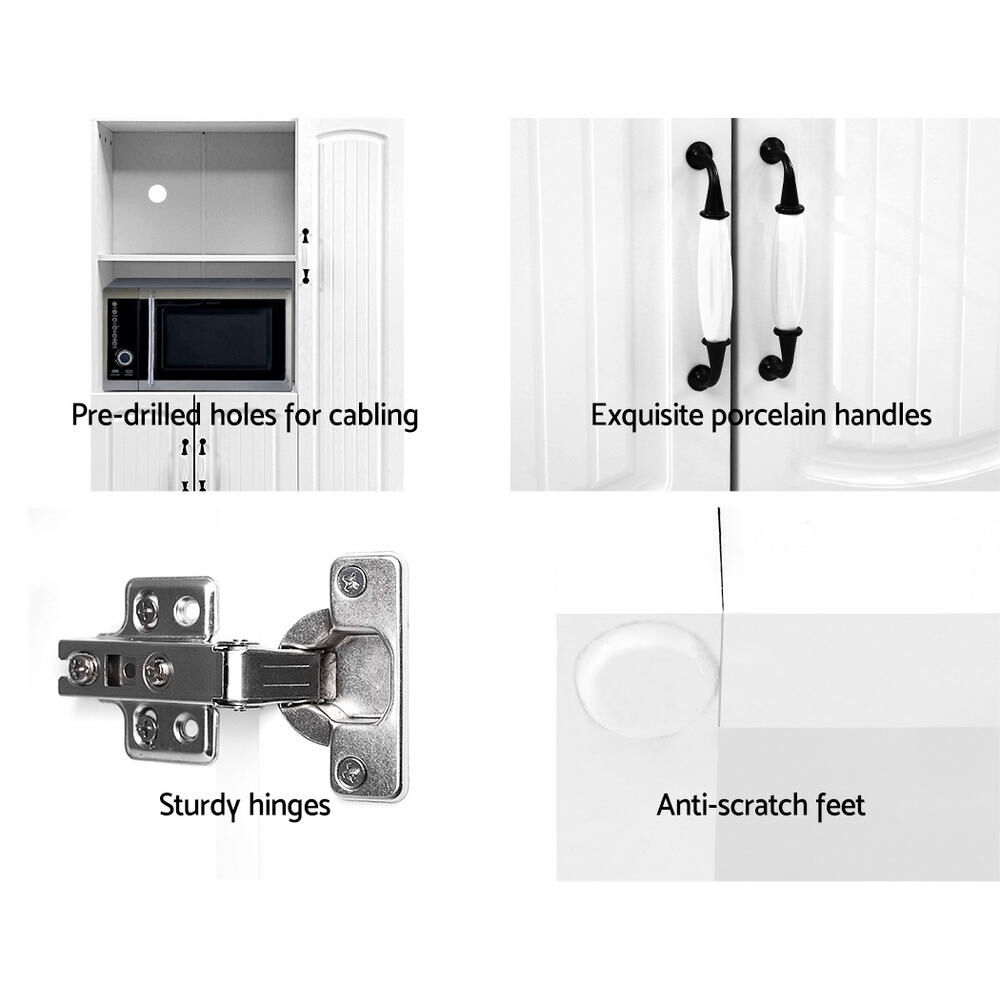 $160.88Add a touch of Provincial charm to your home with our lovely period-style Artiss Buffet Sideboard. But it is not only the design that is timeless. The buffet sideboard itself is made to both last and please, with its 15mm thick particle board construction with smooth melamine finish, beautiful moulded doors, exquisite vintage-style porcelain handles, sturdy hinges and anti-scratch feet. Two open shelves and two cupboards with closed shelving provide ample storage space for all your kitchen essentials, while the pre-drilled holes at the back of the open shelves allow for neat and tidy management of all cabling connections for your microwave and other electrical appliances. And best of all, the classic design and neutral white tone mean that the cabinet will suit any kitchen, dining room or pantry. Or any room for that matter, such as the living room.