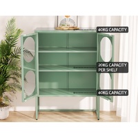 $174.79For a beautiful combination of modern functionality and timeless design, the new Artiss Ella Buffet Sideboard will give your home a cheerful, modern refresh. Whether you need extra storage space or want to revamp your space with unique furniture pieces, the Ella is a real statement piece. The two-door cabinet is made from high-quality cold-rolled steel and features two adjustable shelves for all your essentials. The doors feature stylish circular glass panels so you can see exactly what's inside. Each shelf has a 20kg weight capacity, with a 40kg weight capacity for the base and top. The smooth surface is easy to clean and maintain simply wipe down with a damp cloth. Adjustable feet pads keep the cabinet in place while also protecting your floors. For extra security, you can attach the cabinet to the wall with the built-in anchor points. Looking for a contemporary glow-up? Get your hands on the Artiss Ella Buffet Sideboard today.