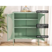 $152.94For a beautiful combination of modern functionality and timeless design, the new Artiss Elsa Buffet Sideboard will give your home a cheerful, modern refresh. Whether you need extra storage space or want to revamp your space with unique furniture pieces, the Elsa is a real statement piece. The two-door cabinet is made from high-quality cold-rolled steel and features two adjustable shelves for all your essentials. The doors feature a stylish circular mesh hole so you can see exactly what's inside. Each shelf has a 20kg weight capacity, with a 40kg weight capacity for the base and top. The smooth surface is easy to clean and maintain simply wipe down with a damp cloth. Adjustable feet pads keep the cabinet in place while also protecting your floors. Looking for a contemporary glow-up? Get your hands on the Artiss Elsa Buffet Sideboard today.