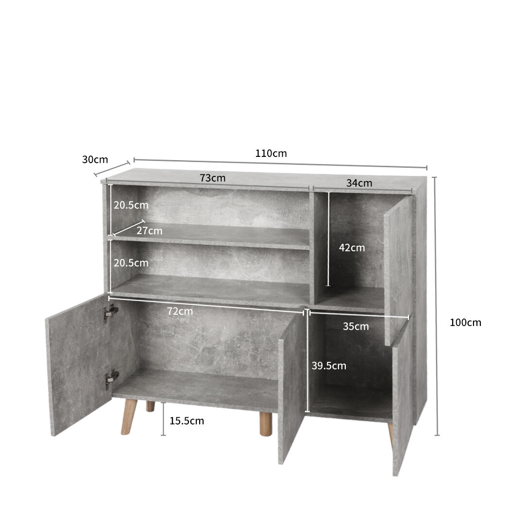 Store all your bowls, cups, plates, mugs and more. Open the doors to your grey sideboard. Store things on the open shelving. Need more storage? Get yourself a second sideboard.