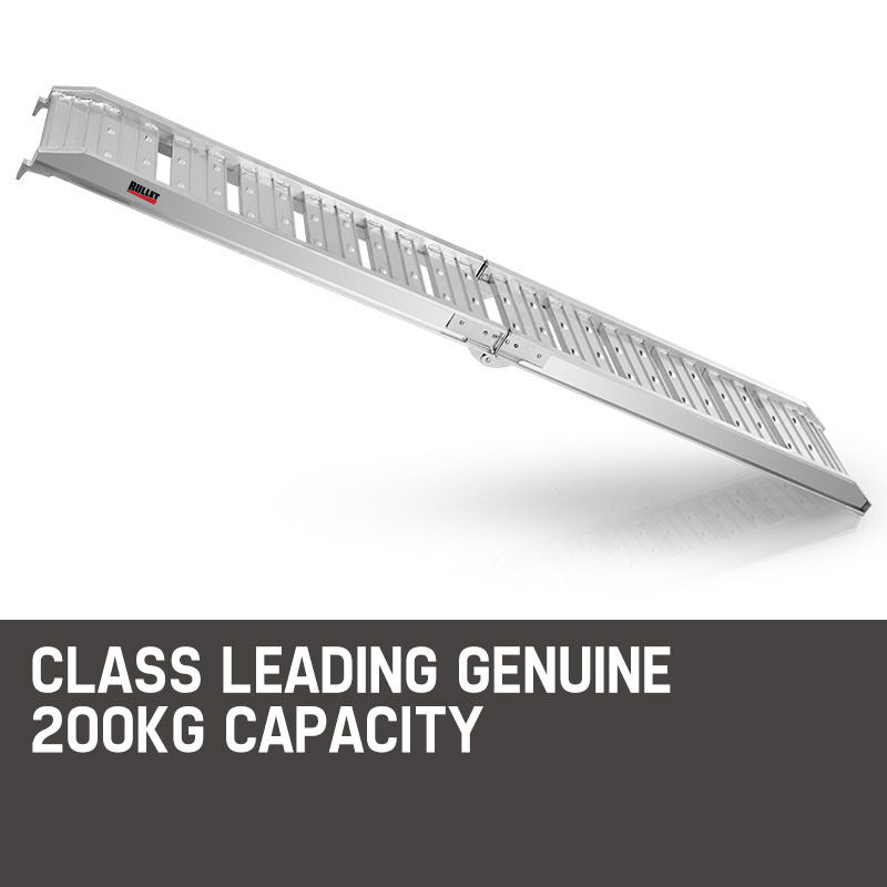 Finished in the absolute highest quality marine grade alloy, BULLET loading ramps are expertly machine welded and assembled using correct load rated fasteners, plus feature an ultra-convenient fold away design that tucks into any corner of your vehicle, BULLET Ramps are the ultimate choice for self sufficient riders!
