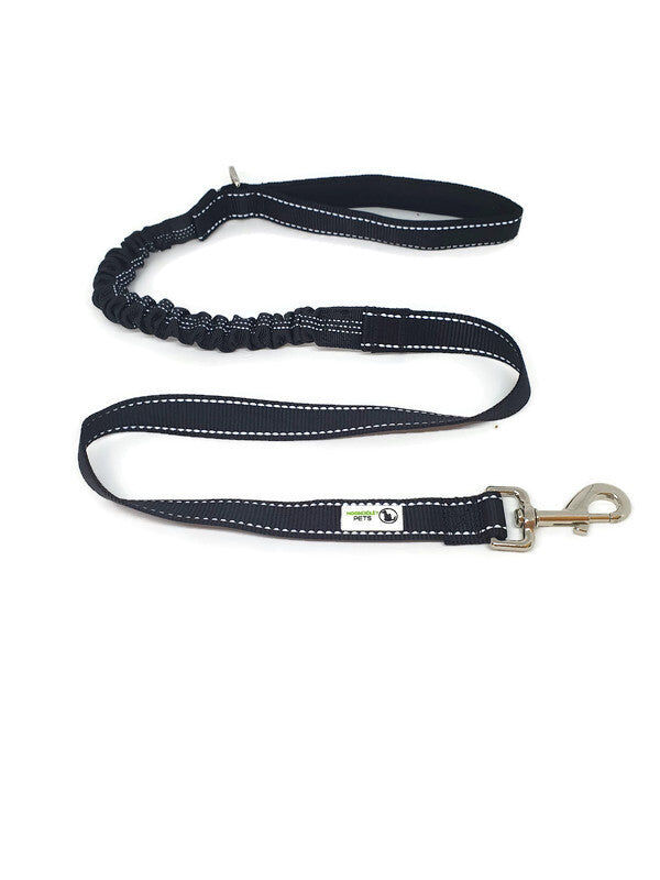 Bungee Dog Lead Nylon w/Reflective Stitching - Moondidley Pets Black