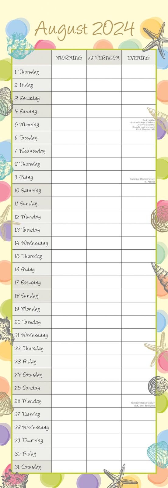 By the Sea - 2024 Slimline Slim Wall Calendar Hanging Planner New Year Gift