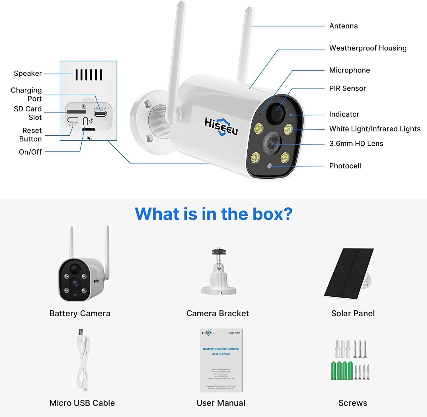 Hiseeu C40 Indoor/Outdoor WiFi Battery Camera With Solar Panel