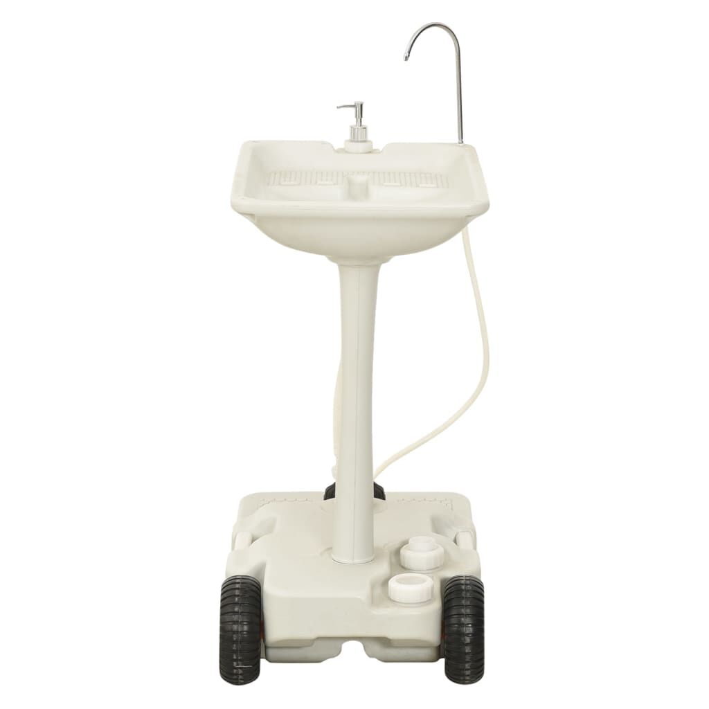 $215.99This portable handwash stand makes water easily accessible outdoors to clean your vegetable, fruits and hand. The wash sink is perfect for camping, motorhome trip, food event, pop kiosk, etc., thanks to its lightweight and compact design. Made of HDPE, this stand is strong, weather resistant and easy to clean. The camping handwash station is fitted with a 5-litre soap dispenser and a 30-litre freshwater tank. It features a hands-free operation design by stepping on the foot pump to provide a stream of water. The pedestal sink has two built-in wheels for easy transportation. Make your camping more convenient and enjoyable with this portable handwash stand!