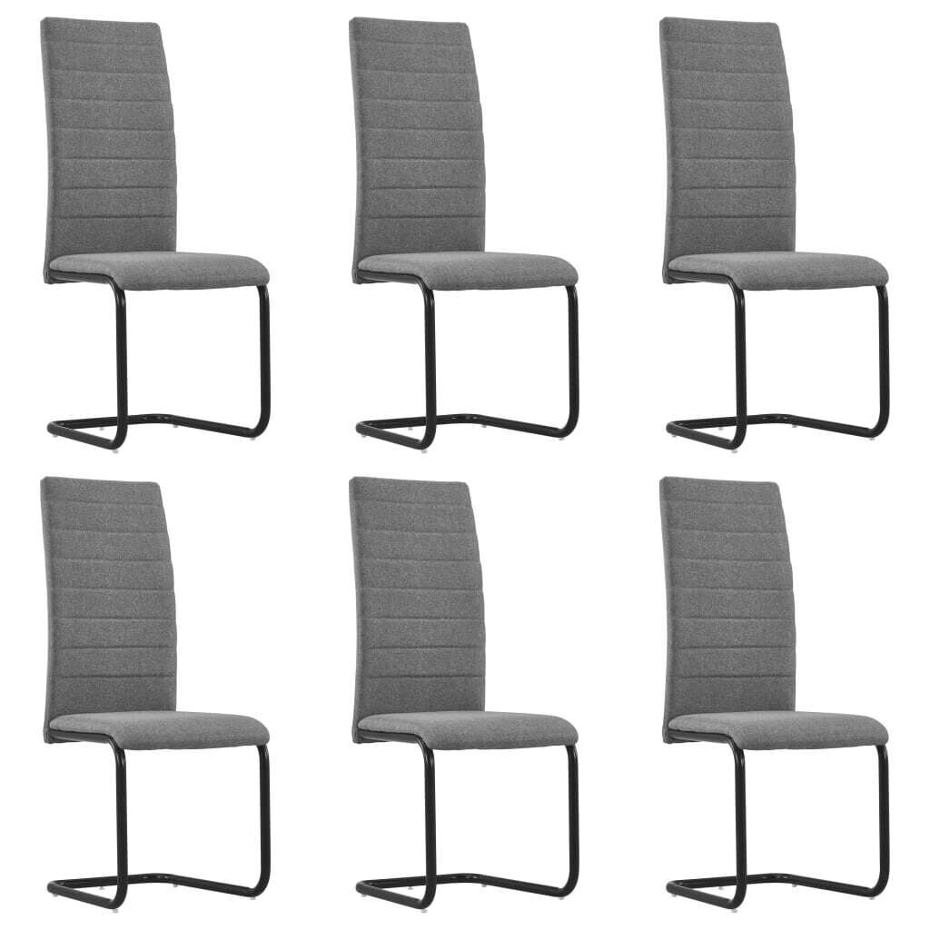 Add a modern touch to your dining room or living room with our cosy and stable cantilever dining chairs! The dining room chairs are upholstered in durable fabric to provide comfort. This set of 6 dining chairs is aesthetically and ergonomically designed to make a cosy highlight in your home. It provides a comfortable place for your family to have dinner in the dining room or read and rest in the living room. Thanks to the soft seat and backrest, our chair set will surely bring you optimal seating comfort. Additionally, the powder-coated metal legs add to the chairs' stability and sturdiness. Delivery includes 6 dining chairs.