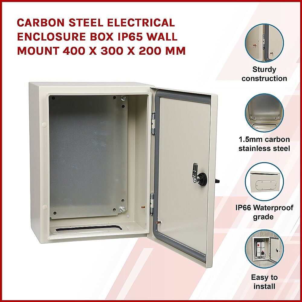 $113.45As handy as electronics and technology are, there's no denying that being able to store all of your important electronic components and circuits away from prying hands and wild weather is an essential aspect of keeping your home and family safe. The Randy and Travis Machinery Carbon Steel Electrical Enclosure Box is the perfect way to keep all of your important electrical circuits and components securely and safely stored away. This helps to ensure that no one can get into them or they don't become damaged. Keeping these essential components stored away will also help to keep them dry and clean. The sturdy steel construction and waterproof quality of the enclosure box will help keep everything in good working order. Easy to install, with a lockable door, you can't go wrong with this enclosure box.