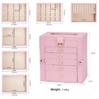 CARLA HOME 6-Layer Large Jewelry Box for Women withDrawers, Mirror, Lock, Necklace Hooks & Side Compartments for Rings, Earrings, Bracelets, Gifts (Pink)