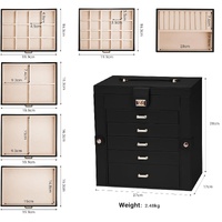 CARLA HOME 6-Layer Large Jewelry Box for Women withDrawers, Mirror, Lock, Necklace Hooks & Side Compartments for Rings, Earrings, Bracelets, Gifts (Black)