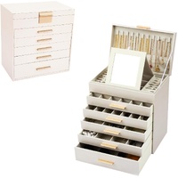 CARLA HOME 6-Layer Large Jewelry Organizer Box for Women with Mirror, Drawers, Hooks & Dividers for Rings, Necklaces, Bracelets, Ideal Gift for Women (White)