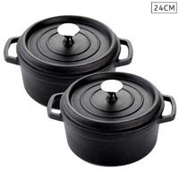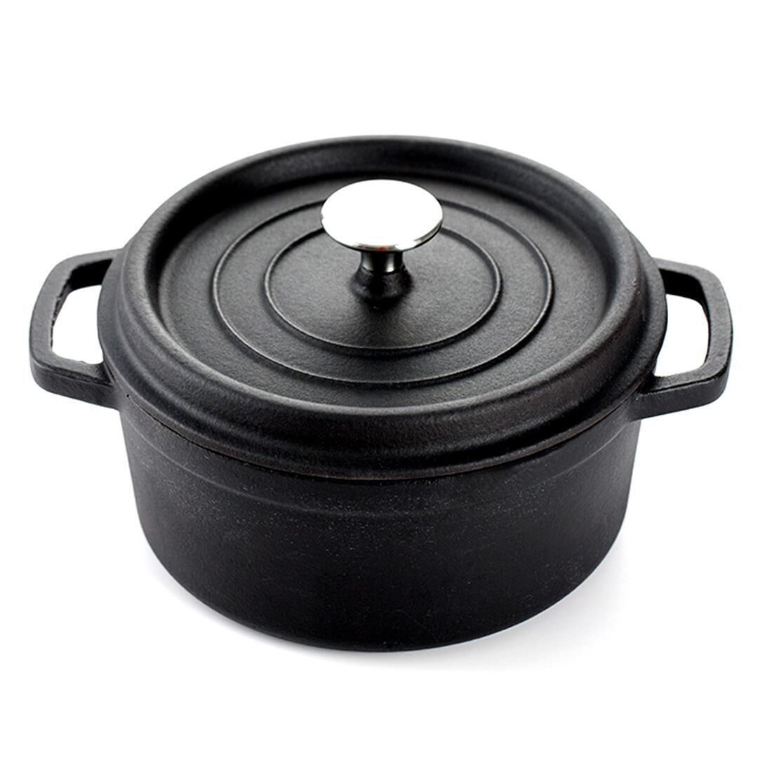 Cast Iron 24cm Stewpot Casserole Stew Cooking Pot With Lid 3.6L Black