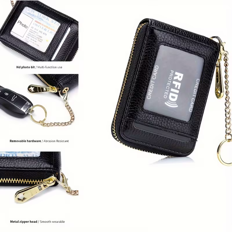 Full zipper encircling for greater safety: A smooth zipper encircling it, whether it's small change or cards, can firmly protect them from falling off, making commuting and traveling more reassuring.