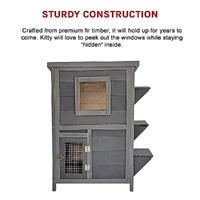 Your cat deserves a little spoiling now and then. This elegant cat condo definitely ticks off all the boxes. Stylish enough to be displayed proudly in your home, this two-tier kitty condo has plenty of room to house and entertain your feline friends. Crafted from premium fir timber, it will hold up for years to come. Kitty will love to peek out the windows while staying hidden' inside. And, inside the top section, you can hide your cat's litter box to keep it out of sight from family and guests.