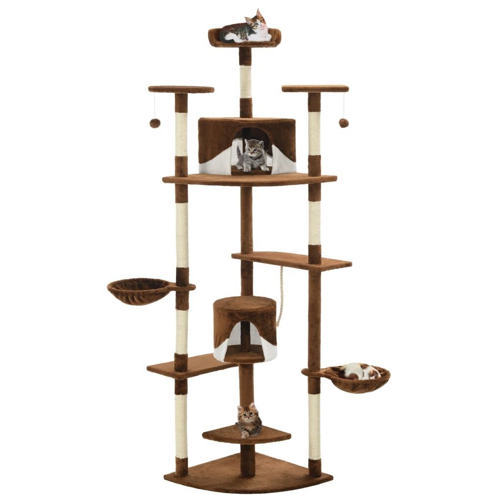$111.59Give your feline friends a taste of luxury with our feature-packed cat tree! This multi-storey cats' play centre, with a solid frame covered in soft, comfortable plush, is the perfect retreat for your cats to scratch, climb, perch, hide, and rest. Your feline friends can sharpen their claws on the scratching posts wrapped in sisal rope, which provides a healthy outlet for their scratching instincts. They will also enjoy chasing after each other while jumping up and down this fun play centre. At the top of the cat tree, there are two dangling toys that will engage your curious cats. When they've had enough playtime fun, your little friends will love resting on the upper platforms where they have a better view. They can also hide in the cosy houses to take a nap, or take a load off on the comfy baskets. With all these fun features, this cat playhouse will become your furry friends' favourite hangout spot!
