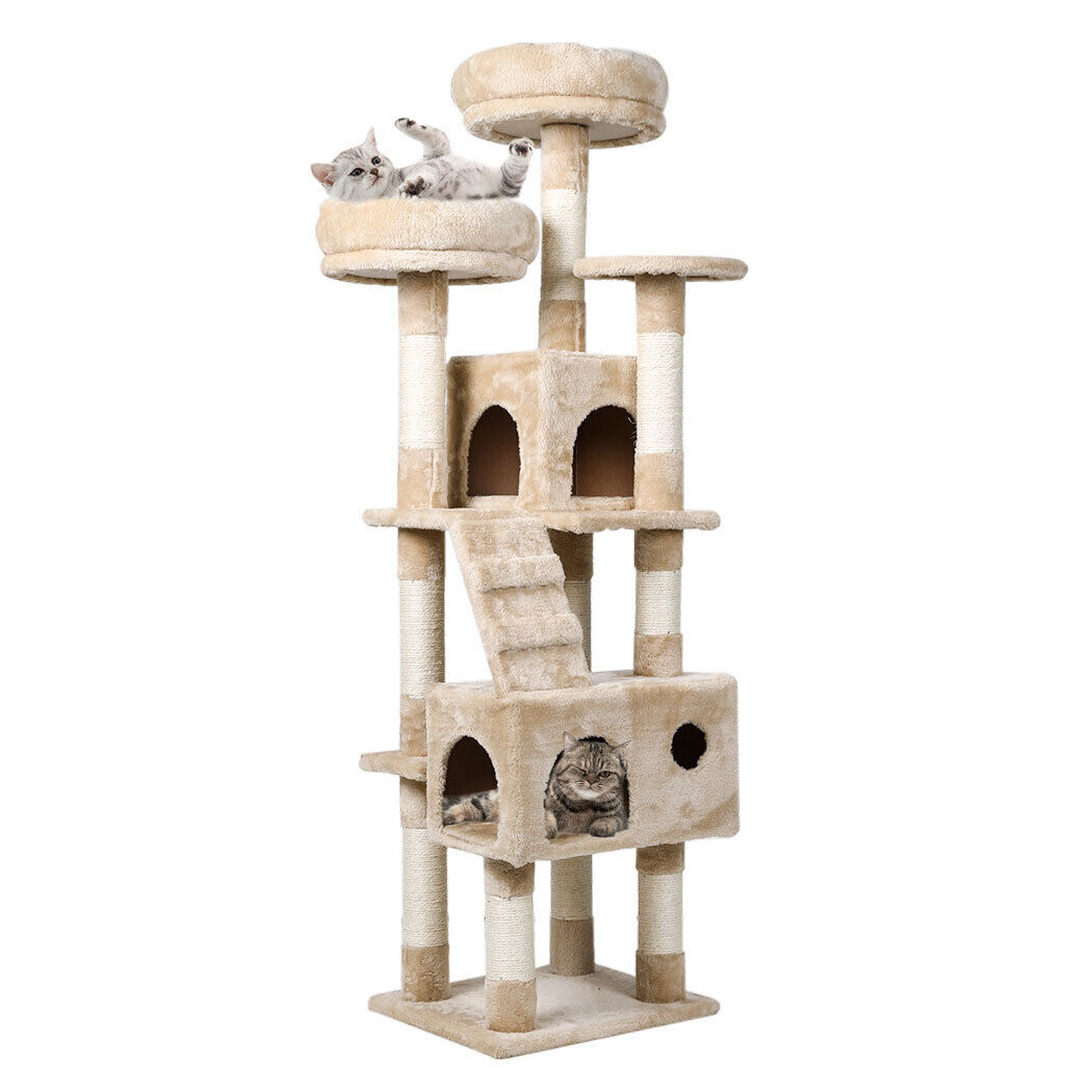 Watch your furry friends perform darnedest things with our exquisitely built Cat Tree. A perfect play area for your cats to jolly. Cats love climbing, jumping around with burst of excitement! With its specially structured multi-layers, this cat tree does not limit their happiness. A unique cat-friendly design that engages revitalizing playtime with a place to rest. Let your cat crave its natural instincts such as practicing hunting, enhancing its reflex, or scratching to mark its territory. Your cat must nurture its inner capabilities to tackle real-life situations when they go around exploring. Your cat’s very own private getaway!