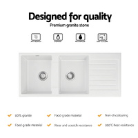 Elevate your kitchen utility with our Stone Sink series, designed for superior performance and lasting aesthetic appeal. This product is constructed using an advanced composite material, featuring a high concentration of 80% granite for a dense, highly durable body. The surface is engineered to handle rigorous daily use, demonstrating reliable impact and wear resistance against heavy things. Functionality is paramount: the sink is resistant to scratching, high heat (up to 280°C/536°F), and oil penetration, simplifying cleanup and maintaining a flawless appearance. Built with food contact grade materials, the non-porous structure is designed to support a hygienic preparation area. This versatile range offers both Single and Double Bowl options, available in contemporary Black or White finishes, ensuring an appropriate size and style is available for any home renovation or new build project.