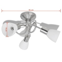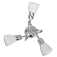 NOW $52.07This unique ceiling lamp, with three glass shades, features a modern design. The satin nickel finishing gives this lamp a contemporary style - perfect for living room or bedroom with any style. This lamp can be easily mounted on any ceiling with a high quality metal base. Three tangled metal tubes present a chic look. Wonderful light will come through those delicate glass shades, illuminating every corner of the room. This exclusive ceiling lamp is guaranteed to be distinguished by its pleasing simplicity. This lamp is suitable for three E14 bulbs. Please note the bulbs are not included in delivery.