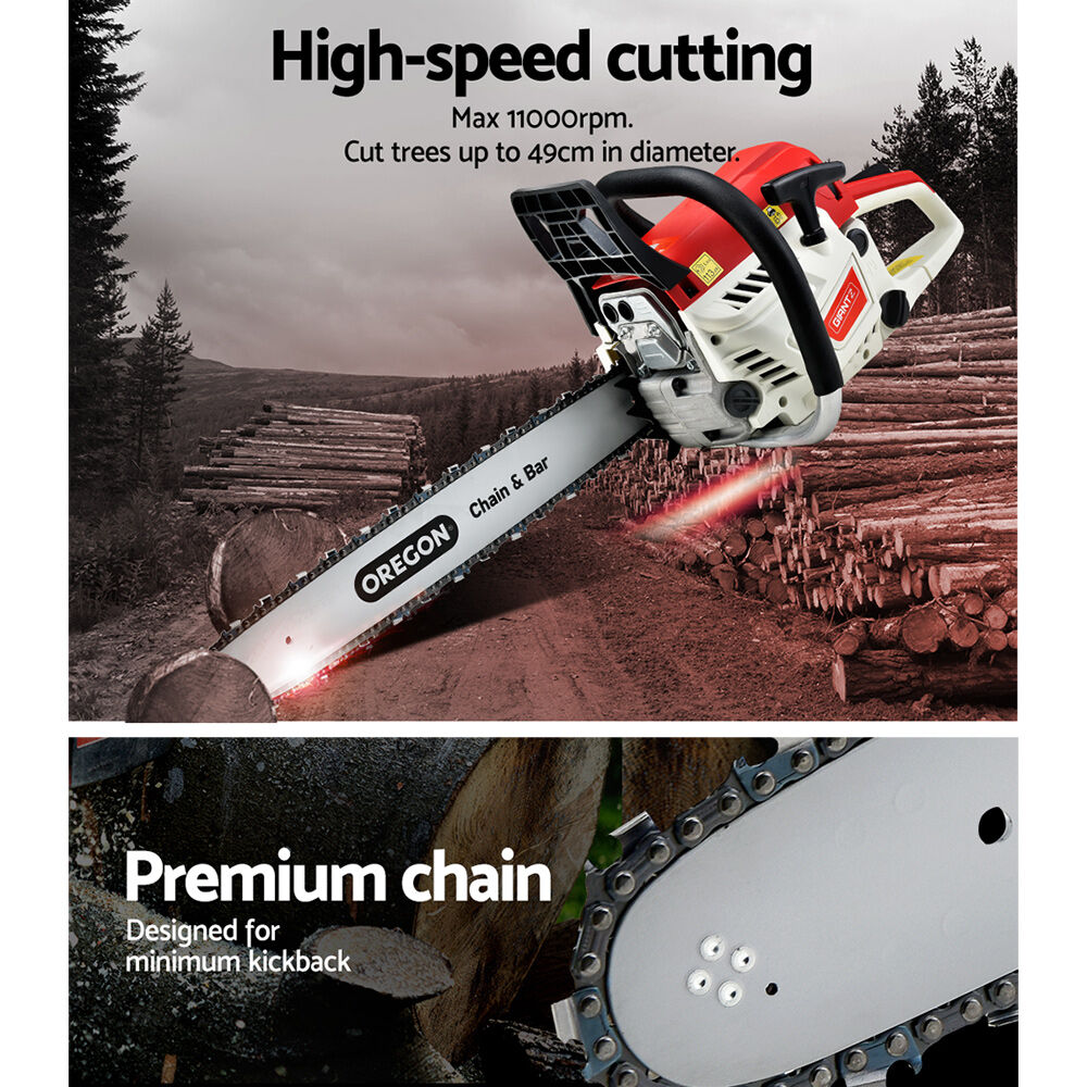 We'll cut to the chaste. The GIANTZ 52cc Chainsaw is serious commercial grade sawing. Cutting trunks, logs, planks, trees and more are like hot knife to cold butter.