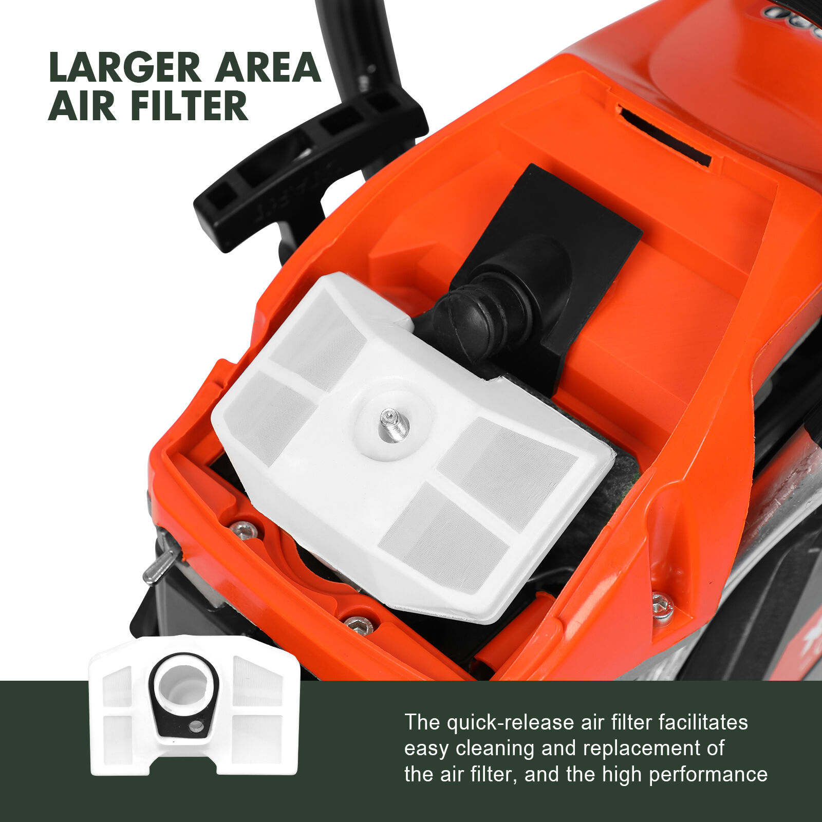 $176.39An essential tool of the trade, the X-BULL Series Petrol Chainsaw is a must-have for any tradesperson or gardener, whether you're commercial or home-based. Thanks to its direct air injection carburettor, it is built for high-power, high-speed cutting. It features a balanced design for ease of use and maneuverability, while the built-in anti-vibration system keeps fatigue at bay perfect for those long jobs. It uses a double recoil pulling system for easy start-up, while the adjustable automatic oil feeding system allows you to set and forget your chain lubrication for a smooth cut in any condition. The chainsaw features a quick tension chain mechanism to adjust the chain easily and efficiently, and the integrated chain brake helps to keep you safe. With easy access to the engine, filters and spark plugs, maintenance is easy. Your purchase comes with a bonus saw chain, spark plug, tool set and safety gear, so you'll have everything you need to get started. Trust the pros and add the X-BULL Series Petrol Chainsaw to your collection today.