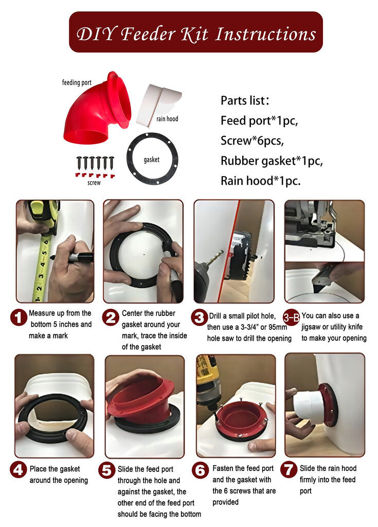 DIY Port PVC Gravity Fed Chicken Feeder Use to make a feeder from Buckets Barrels Bins.