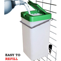 This compact drinking bottle is ideal for very small chicks. It's always interesting to see how fast the chicks discover where to find water. Easy-to-refill bottle, thanks to hinged cover. The leak-free nipple keeps the litter clean and dry and reduces waste. Stainless steel 360 drinking nipple functions when touched from side or tip. Using the supplied galvanized mounting spring clip the bottle can be attached to almost any cage or pen, inside or outside, and can be height-adjusted as chicks grow