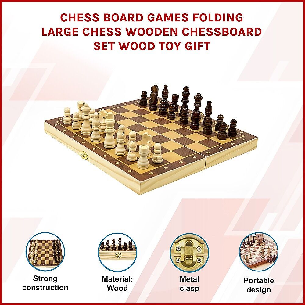 Finished with an anti-scratch surface to protect the board, the chess pieces move in near silence, allowing players to concentrate on their next move. Both board and pieces showcase the wood's grain, unlike cheap plastic alternatives. The set folds up into a box and closes with an elegant brass-tone clasp so you can take it wherever you go or store it until your next game. Whether you buy it for a gift or to reward yourself for a job well done, this chess set is designed to last a lifetime and beyond. Order yours today!