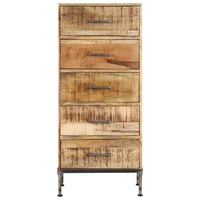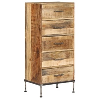 $404.09This wooden chest of drawers exudes a vintage charm and will be the centre of attraction for your interior. This drawer cabinet is made of solid mango wood, which is a hardwood with dense grains. Rough mango wood not only has the strength to bear the weight, but also stands the wear and tear of time. Therefore this beautifully-designed side cabinet is stable, durable and eye-catching. The craftsmanship and the beautiful wood grains make every piece of furniture unique and slightly different from the next. The iron handles add the side cabinet's industrial style. Besides, this sideboard features 5 drawers, providing ample space for storing your clothing, books, and various other items. Important note: The colours vary from piece to piece, making each piece unique. The delivery is random, ensuring the exclusivity and individuality of your product.