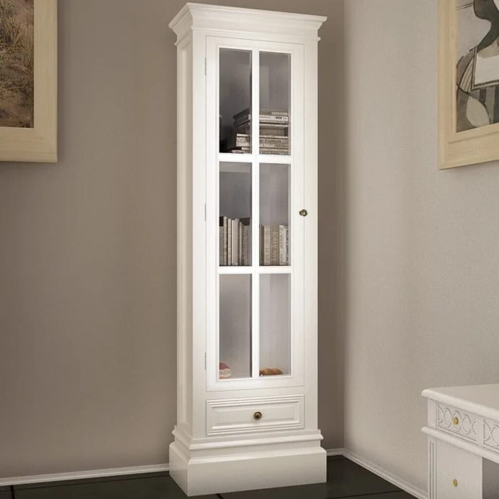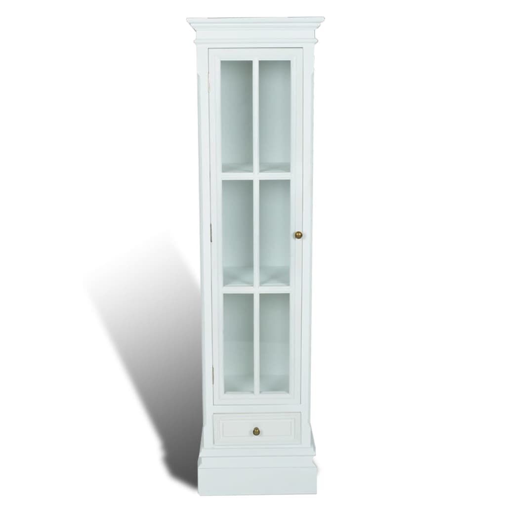 $345.59This tall spice Cabinet has three display shelves and 1 bottom drawer. It has a door for the display shelves to keep away dirts and dusts. It is a great organiser in the office, living room, bedroom, or any other room in the house. The Cabinet is made of durable, light weight MDF, painted in white and distressed for a primitive, vintage, aged appearance. Its versatile and stylish design make it a great fixture in your home. Note: since this furniture is hand-crafted, made of wood and painted white, it may come with a small defect.