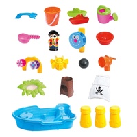 This pirate ship-modelled sand and water table includes 20 sand and water play pieces. Watch your kids bring their vessel to life with an exciting choice of pirate flags, boats, buckets, scoopers and sand wheels– pre-packaged and ready to set sail. The interactive pirate cannon, tropical palm tree and captain’s lookout tower complete the look and simulation of a real pirate-action setting.