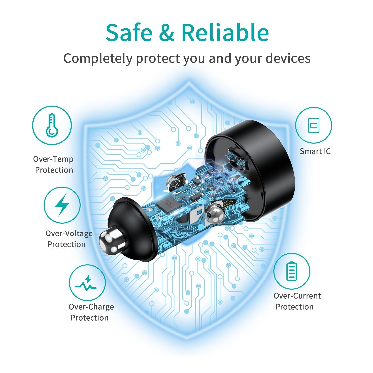 Certified with CE, FCC, and RoHS and built-in intelligent protection system to protect your devices from over-current, over-charging and over-heating ensures superior performance, safety, and reliability.
