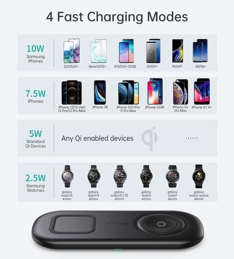 1x Choetech T570-S 2-in-1 Wireless Charger, 10W Max Wireless Charging Pad with Adapter for Galaxy Watch